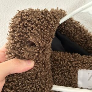 Pre-owned Zara Kids Teddy Duffle Toggle Hooded Coat. Size 13-14 / 164cm, and color is brown. Discounted rare style. MSRP$89.99.