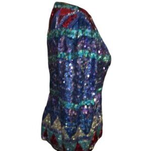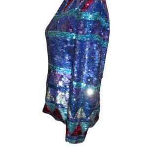 A.J. Bari 100% Silk Shimmer Sequin Long Sleeve Evening Wear Top size 8 M Vintage