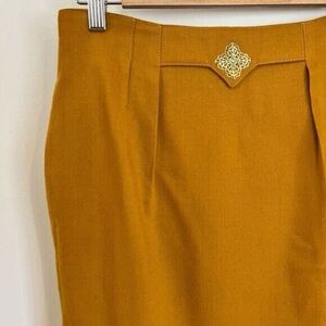 Vintage Denise Petites Women’s 10 100% Pure Wool Pleated Slit Skirt Yellow