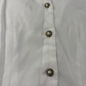 This elegant white button-up top is perfect for any occasion. Its classic design and comfortable fit make it a versatile addition to your wardrobe.