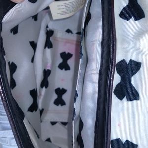 Amazing Kate Spade New York 'Chelsea Park' patent leather crossbody. Light cream and black with a leather bow and strap. Measure 7"L x 6"H x 3"W. Strap 21"max.
