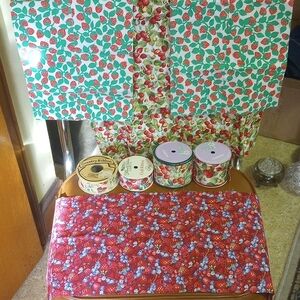 This ceramic container and lid have an all-over strawberry and floral pattern. White with red, green, and yellow. 3.5 inches high and 5 inches in diameter. Versatile use for kitchen or any room. Good condition. No damage. Limoges, France. Please check out my other strawberry listings!