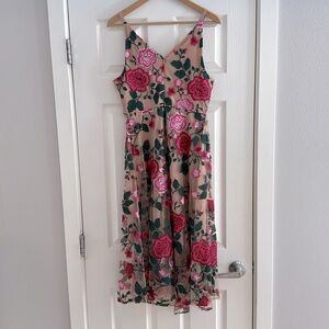 PRICE DROPPED AND FIRM. Brand new with tags beautiful embroidered floral midi dress. Size 4. Comparable to a size small.