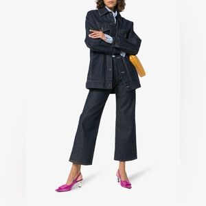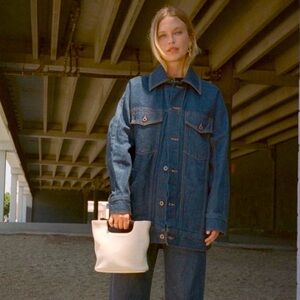 NEW WITH TAG! The Quinby Jacket by Simon Miller is a dark indigo denim jacket. Made of cotton it features an oversized fit and lightweight feel. Designed with a classic collar, long sleeves, button front fastening, chest pockets and side seam pockets. Denim jackets are quite the port in the storm, as a bit like lovers darls, you can never have too many. Be a bit selvedge and wear your Simon Miller Quinby denim jacket on alternate days to your distressed one.