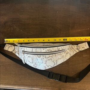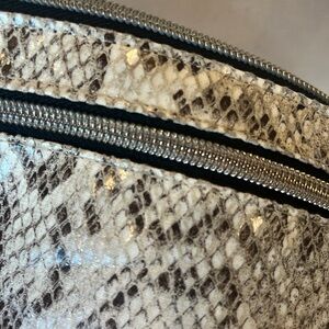 Stylish snakeskin print crossbody bag with adjustable black strap. Perfect for any occasion.