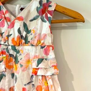 TEA Toddler 3T Sleeveless Dress Flowy Floral Ruffles Cotton Pink Orange Zipper