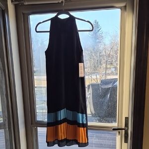 Stylish dress with intricate black and blue patterns. Perfect for any occasion. Gorgeous sleeves. EUC