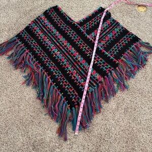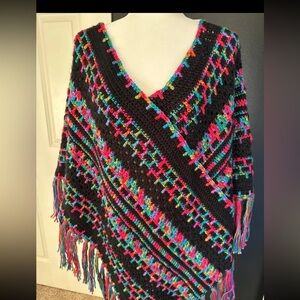 Hand Knit Rainbow Stripe Poncho One size fits all!