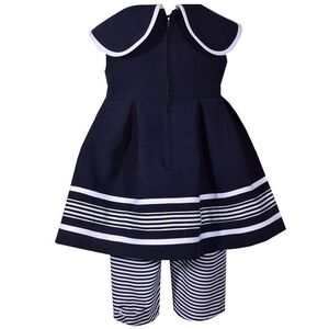 Bonnie Jean Blue & White Striped Sleeveless Nautical Poplin Collar to Box Pleat Dress with Capri Pant Shorts