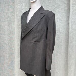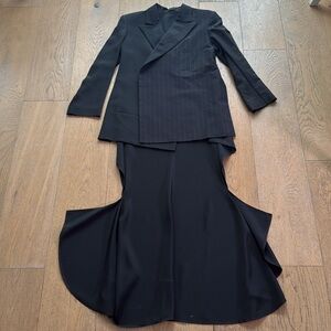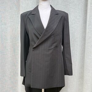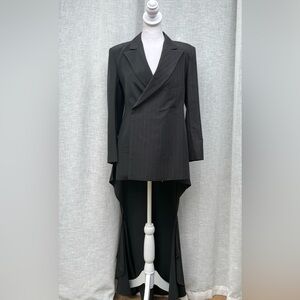 For sale is a Yohji Yamamoto black half striped double breasted swallowtail blazer. 100% Silk. Made in Japan