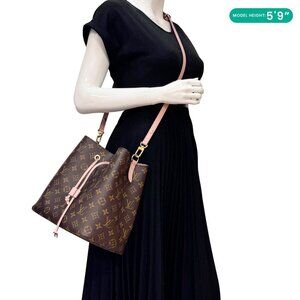 Louis Vuitton Neonoe MM Monogram Canvas Shoulder Bag in Brown features the iconic monogram print with a drawstring closure and adjustable strap. A modern take on a classic bucket style, perfect for everyday elegance.