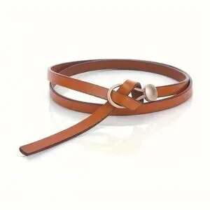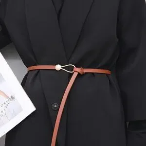 Belt No hole Knotted Adjustable Corset Brown Button Loop Hole Less Pu Leather