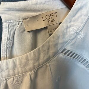 Loft Womens White Peasant Crew Neck Long Sleeve Tunic Blouse Top Size 18