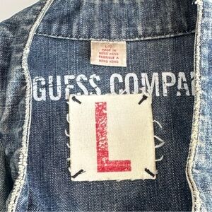 GUESS denim jacket ZIP FRONT distressed blue denim UNISEX blue jean jacket L