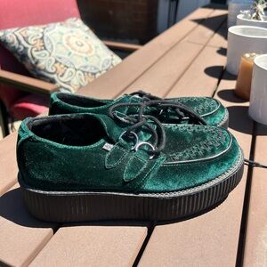 These Velvet Green Creepers feature T.U.K.’s newer lightweight sole. They are in brand new condition and have been in a smoke free home. They are so cool and in such a gorgeous color!