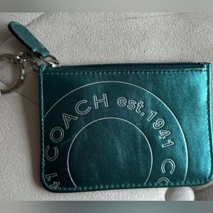 Coach Turquoise Metallic Key Chain Coin/Card Wallet
