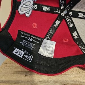 Washington Nationals Youth Baseball Cap Red White And Blue Sparkles. Small area of discoloration where pointing hard to see may clean up easily