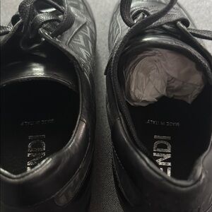 Stylish women’s black monogram and leather sneakers, perfect for any occasion. Comfortable fit with a sleek design.