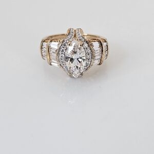 If you are looking for an exquisite wedding ring for everyday wear or travel. This one checks all the boxes. The design is timeless, and the clarity of the gemstones is flawless. Nobody will know this isn't 18k solid gold or that the diamonds are man made. The baguettes add such sparkle and elegance. This ring is drool worthy. Size 8
