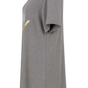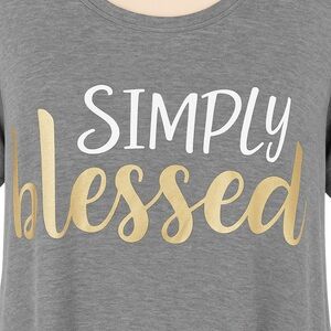Cozy and inspirational nightgown by Lexington Avenue featuring “Simply Blessed” in white and metallic gold. Made from soft heather gray knit with a relaxed fit, scoop neck, and short sleeves. Perfect for sleep or lounging. Size 1X, excellent condition. Approximate flat measurements without stretching arm pit to arm pit 24 1/2 inches, length shoulder to bottom 43 inches