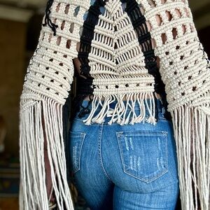 Handmade Cream Boho Macramé Rope Festival Sweater