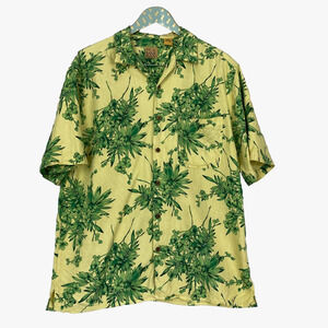 Jos A Bank Silk Shirt Men Medium Tropical Button Up Pocket Floral Green Yellow