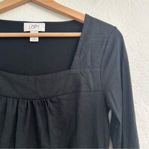 Ann Taylor Loft Black Square Neck Long Sleeve Shirt, Size S