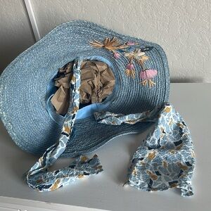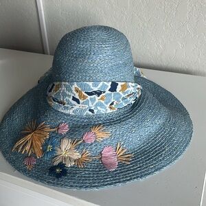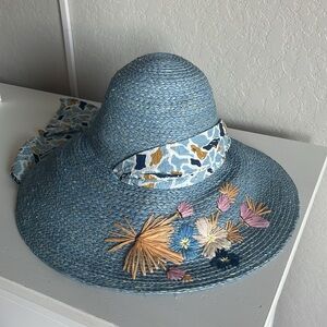 • Lele Sadoughi "Azalea" straw hat with flower embroidery