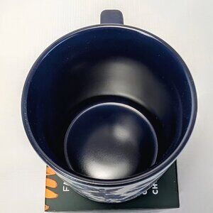 The14-ounce ceramic mug features a serene palette of blues and whites and a pair of birds, a macaw and a toucan, both native to Brazil.
