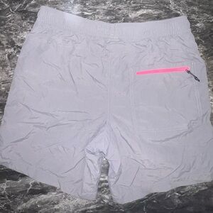 These American Eagle Outfitters All Day Shorts are brand new and never worn. Featuring a sleek gray body with vibrant neon pink zippered pockets and a bold A.E patch, they combine comfort with standout style.
