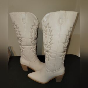 JustFab White Western Heeled Boots