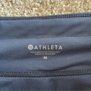 Athleta Laser Run Shorts Women’s Medium Navy Floral Pull On Zipper Pocket Lined