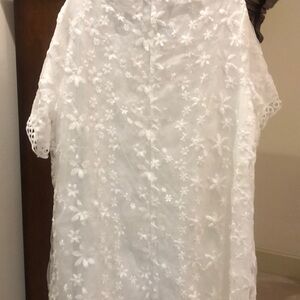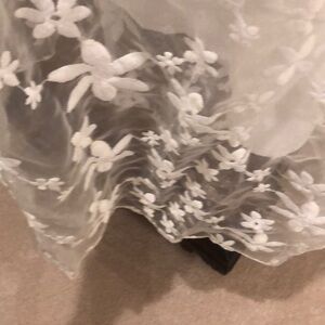This stunning white gown from SHEIN features a romantic v-neckline and elegant puff sleeves, perfect for a bride or wedding guest. The dress showcases a graceful silhouette with a delicate overlay, adding a touch of sophistication to any special occasion. Very pretty. Plus size 18.