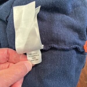 Patagonia Men’s size Large Blue Long Sleeve hemp/cotton rugby shirt. Split seam at the sides on the bottom hem with orange lining. Slim pocket on the left shoulder for pencil or pressure gauge, with orange trim in the top of the inside pocket. Extra button still attached on the inside tag. Heavyweight material. Three buttons at the top. Buttons are metal.