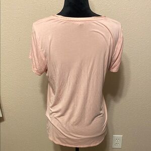 This light pink t-shirt features short sleeves and a sleek, comfortable design. Made from a soft, stretchy material, it offers a flattering fit perfect for casual wear. Previously worn, but still in excellent condition.