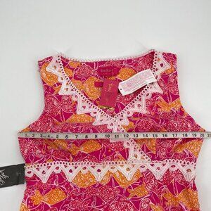 NWT Lilly Pulitzer Jubilee Catherine Dress in size 14. Multicolored, tropical pattern with beautiful eyelet trim, crafted from comfortable cotton.