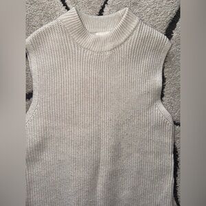Stylish sleeveless knit sweater vest in a versatile cream color. Perfect for layering.