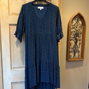 Sold out on-line. Elegant maxi dress with a bold blue & white floral pattern. Perfect for any occasion. Softly structured shape, the best selling, airy Bettina dress is THE dress you’ve been looking for. Button down front, puff sleeves - a little boho, a little preppy and a whole lot of perfect. 26” pit to pit across chest. 50” long. Side pockets. 100% cotton. Sold out on-line. Pet and smoke free home.