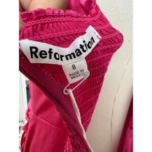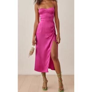 NWT Reformation Marguerite Silk Dress in Flambé Hot Pink High Leg Slit Size 8