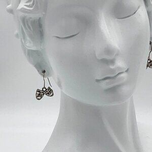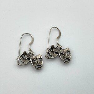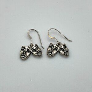 Vintage Silver Tone Theatre or Mardi Gras Comedy-Tragedy Mask Dangling Earrings