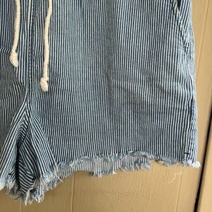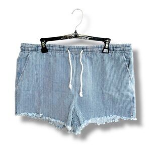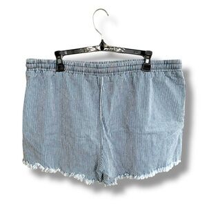These shorts from Wild Fable feature a stylish blue and white striped pattern with a relaxed fit. The raw, frayed hem and distressed detailing add a trendy touch, while the drawstring waist ensures a comfortable fit. Gently used, still in good condition! Size XXL.