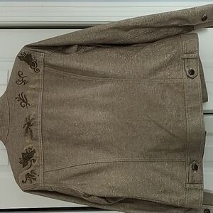 Chico's Gold/Brown Denim Jacket with Embroidery Sz Chico's 1 (Sz 8 or small)