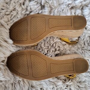 Size 9 with wrap around ankle straps. 3.5 in. heels.