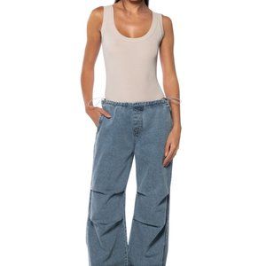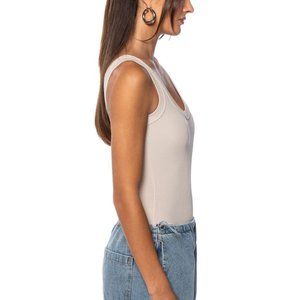 Cream Khaki Scoop Neck Rubbed Bodysuit