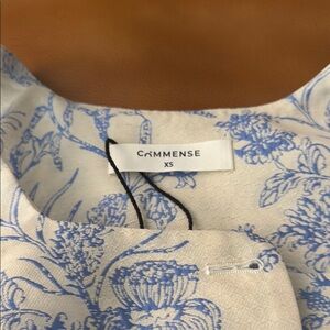 Elegant dress with a blue floral pattern on a white background. Perfect for any occasion.