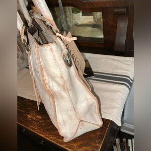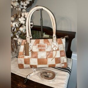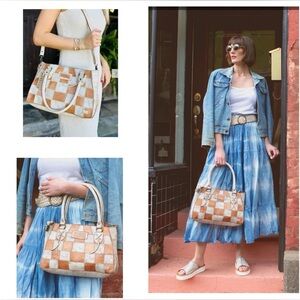 NWT Bed Stu Rockababy Patchwork Satchel Crossbody Bag Tan Nectar Lux MSRP $335