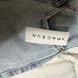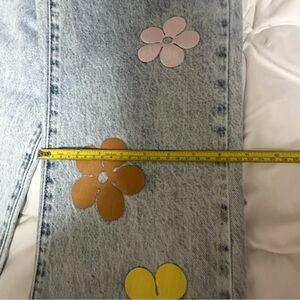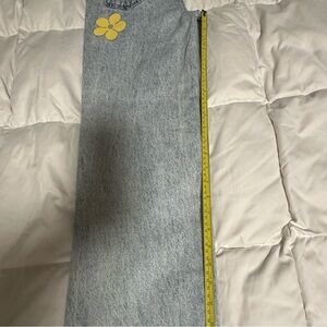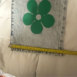 These PacSun jeans feature a vibrant blend of blue and pink hues, enhanced by a unique artistic floral design. The flare and wide leg cut offers a stylish silhouette, making them a standout piece in any wardrobe.
