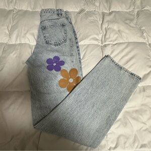 PacSun Blue and Pink Flare & Wide Leg Jeans with Artistic Floral Design
