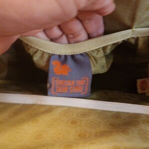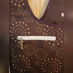 Merrell James Lindars Design Shoulder Bag Shelter For Your Stuff ~ Coffee with Dots. Cute design. Rugged bag or purse with leather strap inside pockets and 1 outside zipper. Magnetic snap closure. Very Good Condition. Clean.