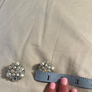 Vintage Aurora Borealis Elegant Silver and White Pearl Earrings 1940’s